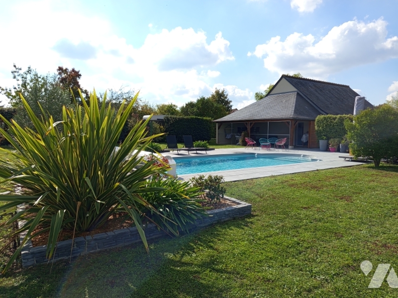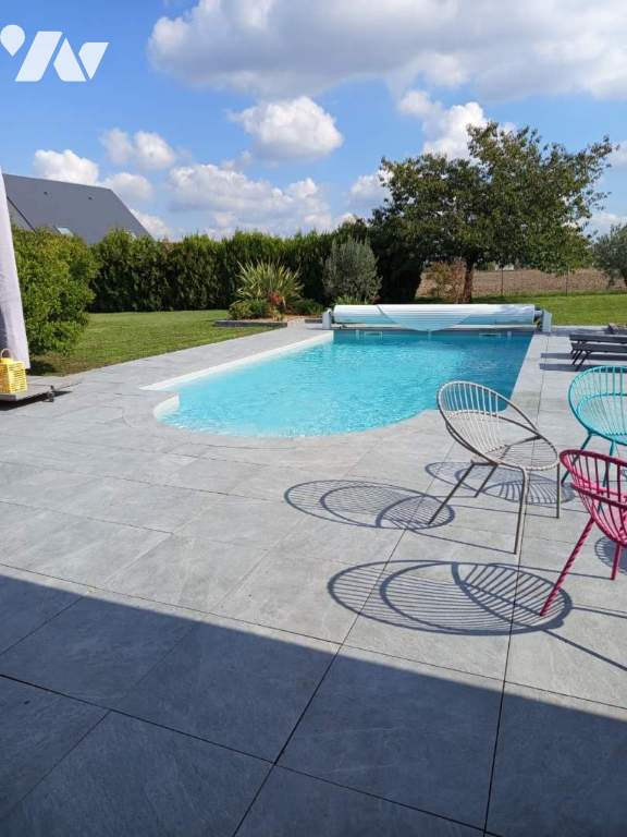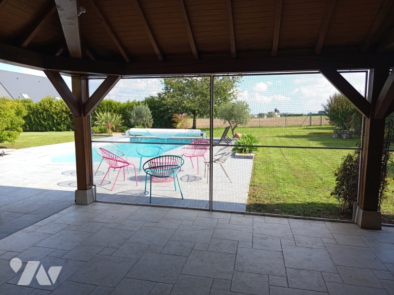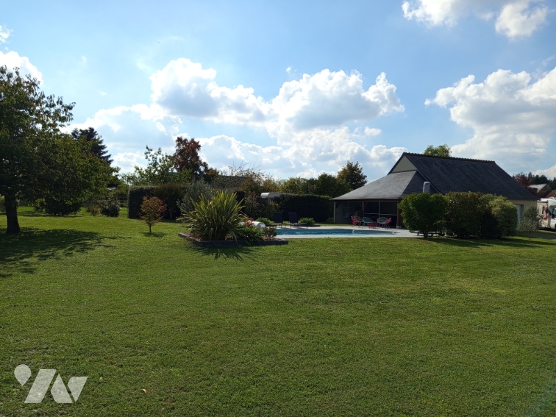 BLERE, Terrain â bâtir - Magnifique terrain à bâtir de 1528m² , totalement clos, plat, comprenant une piscine de 8mX4,50m (chauffée par une PAC), garage (ressemblant plus à une maison d'habitation) composé d'une cuisine, vestiaire, wc, garage d'environ 80m², combles sur la totalité. De la cuisine, vous sortez directement sur une grande terrasse de 32m²couverte par un très joli préau.
